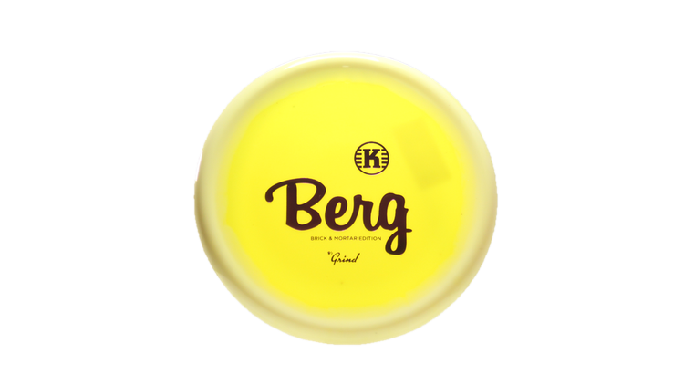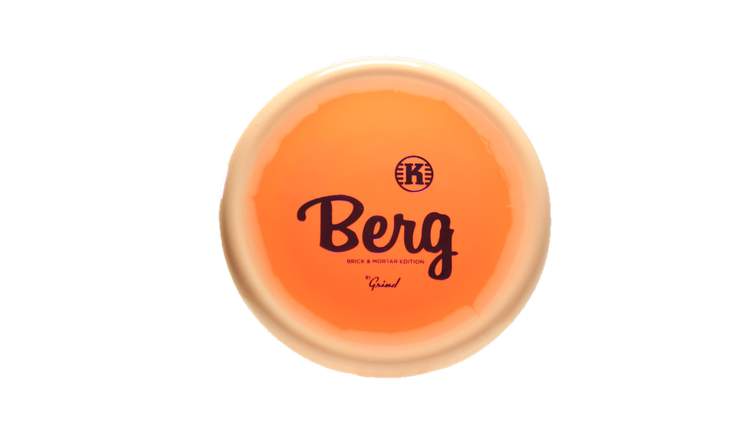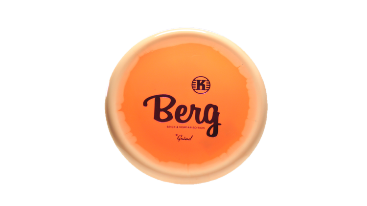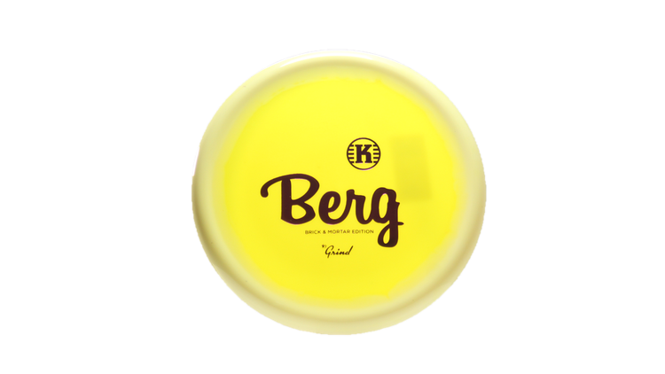 Kastaplast Berg in K1 Grind plastic is a high-performance disc golf Putt & Approach disc featuring a Brick & Mortar Edition stamp.