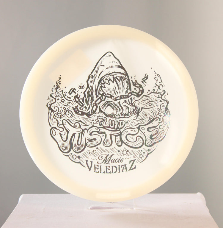 Dynamic Discs Justice in Fluid plastic is a high-performance disc golf Midrange disc featuring a Macie Velediaz 2023 stamp.
