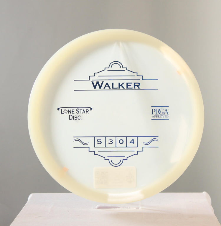 Lonestar Walker in Alpha Glow plastic is a high-performance disc golf Midrange disc featuring a Stock stamp.