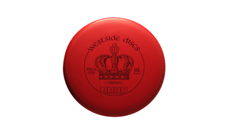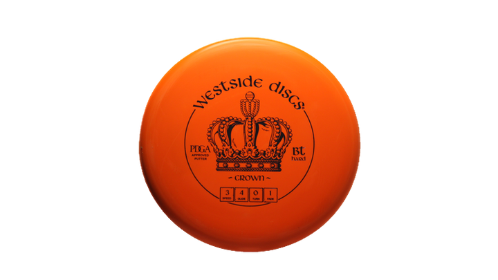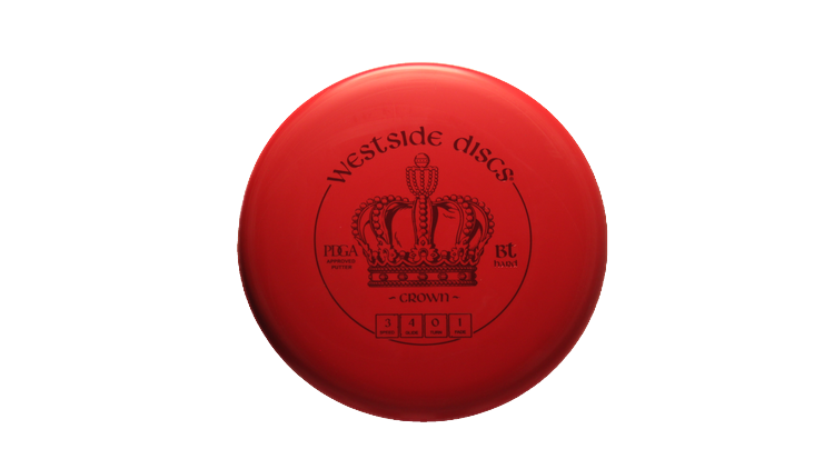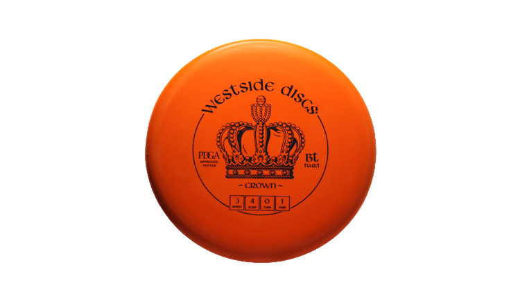 Westside Discs Crown in BT Hard plastic is a high-performance disc golf Putt & Approach disc featuring a Stock stamp.